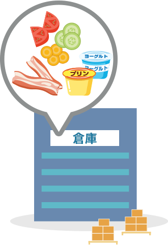 お米など常温で保管する食品は常温倉庫、アイスクリームなど冷凍で保管する食品は冷凍倉庫に保管するよ。工場と同じで、社員が定期的に検査をしているんだよ。