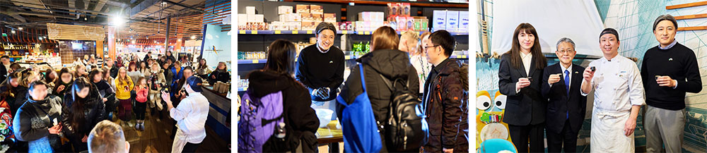 2月に実施した今回のイベントは、キーウ市内にあるFOZZY Group傘下のスーパーマーケット「SILPO」の店舗で開催されました。会場では、今後ゼンショーからFOZZY Groupへ供給予定の食材を使用した日本食のほか、ゼンショーグループの酒蔵「晴雲酒造」の日本酒を提供しました。また、在ウクライナ日本国大使館の中込大使にもお越しいただき、イベント開始時には日本酒を手に乾杯のご挨拶を賜りました。