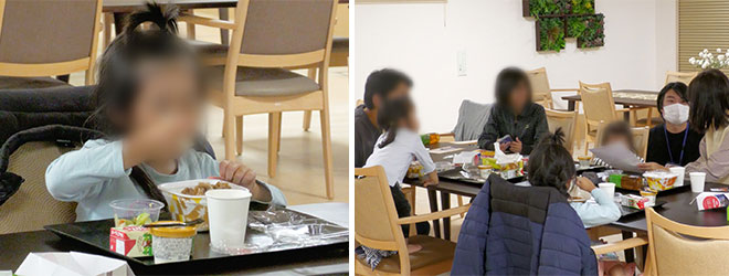 温かい食事とともにテーブルを囲むことで、自然と笑顔や交流が生まれている様子が感じられました。